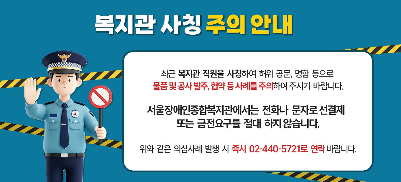 서울장애인종합복지관 사칭 물품/공사 발주 주의 안내