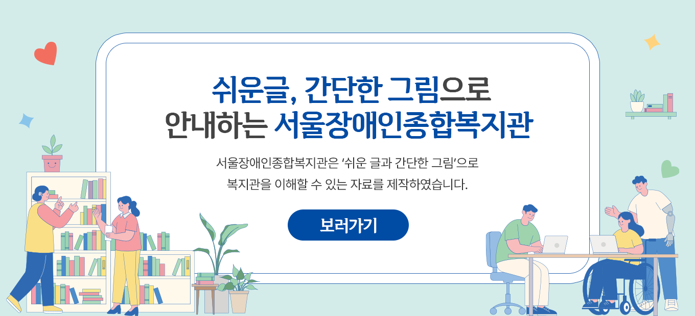 서울장애인종합복지관에서는 장애인 가족에게 휴식을 제공하여 스트레스 해소를 지원하고자 장애인 돌봄가족 휴가제를 진행합니다.많은 관심 부탁드립니다. 1. 형태: 개별 가족단위…