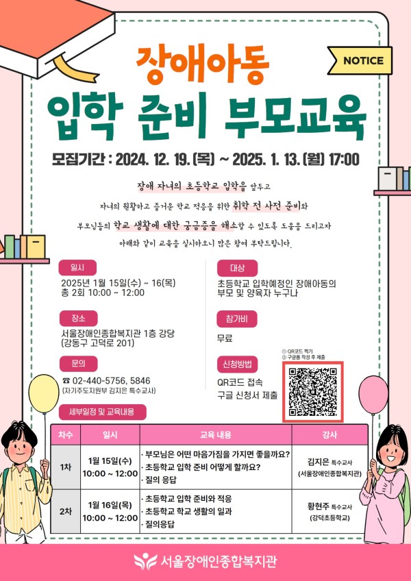 마감 장애아동 입학 준비 부모교육