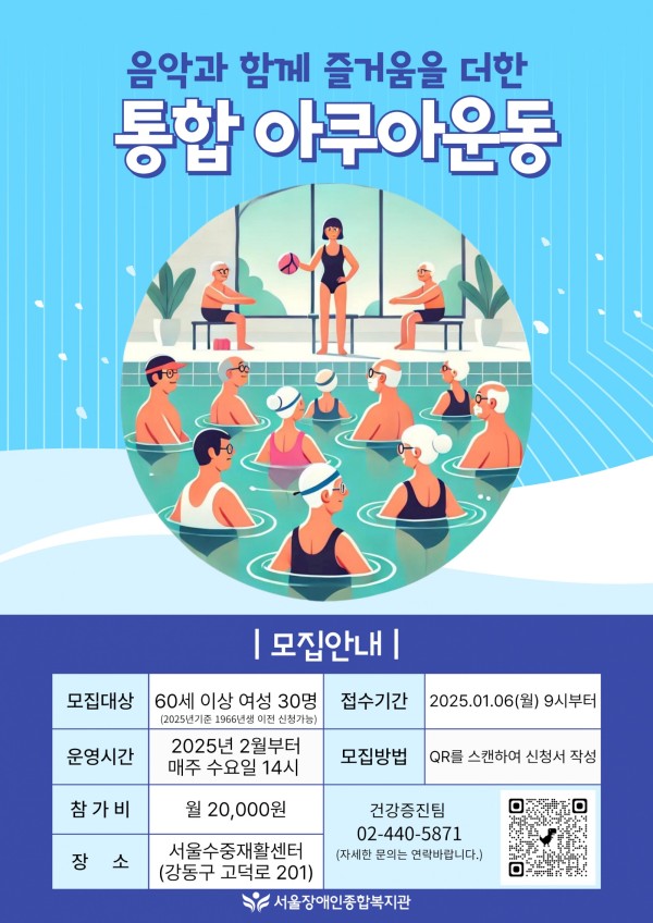 마감 2025년 수중재활센터 통합아쿠아운동 참여자 모집