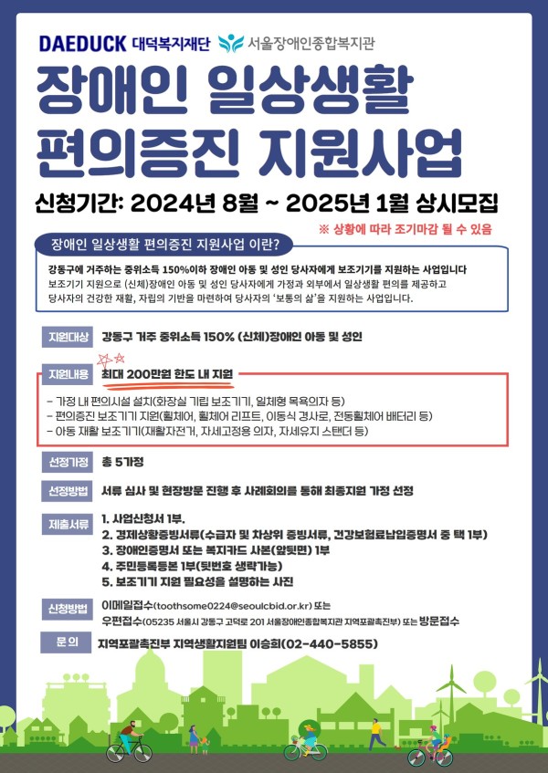<2024년 대덕복지재단 장애인 일상생활 편의증진 지원사업 신청 안내>