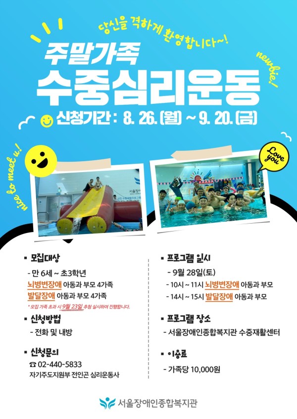 마감 "당신을 격하게 환영합니다~" 주말가족 수중심리운동 참여가족 모집