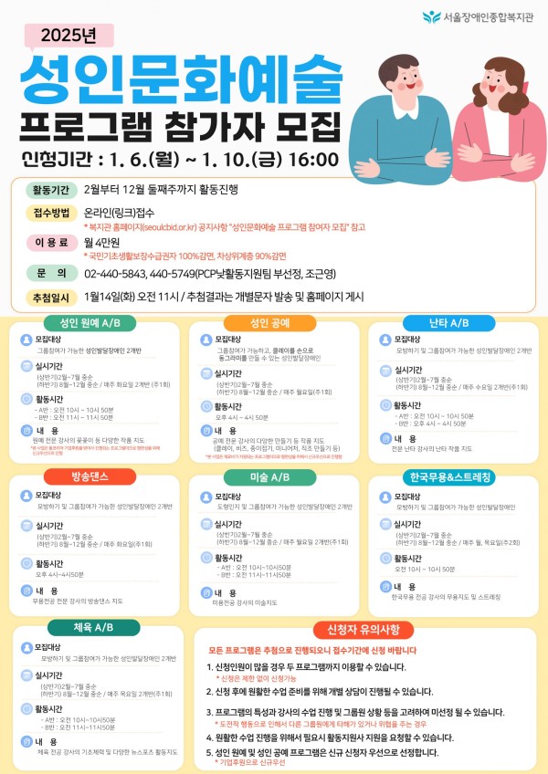 작성자 서울장애인종합복지관 작성일25-01-06 10:08 조회수744본문