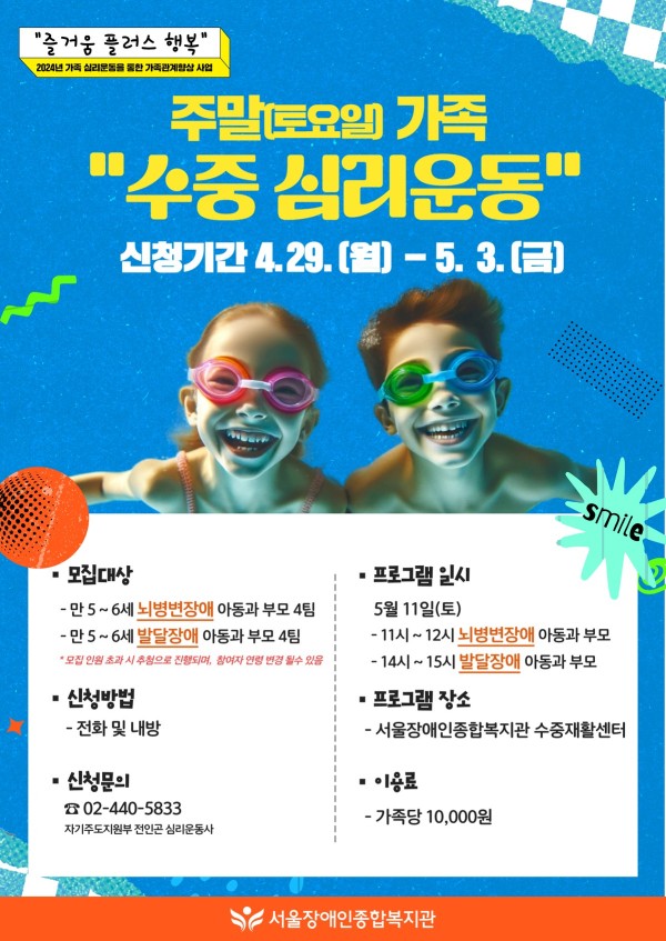 마감 주말(가족) 심리운동 "수중 심리운동" 모집 | 2024년 가족 심리운동을 통한 가족관계향상 사업 …