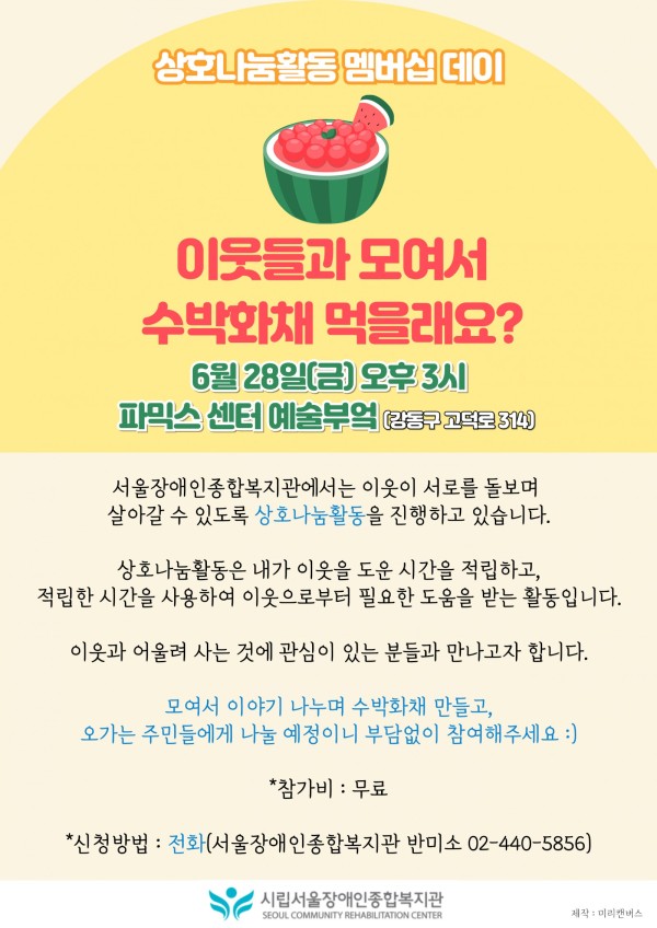 마감 [6월 상호나눔활동 멤버십 데이]이웃들과 모여서 수박화채 먹을래요?