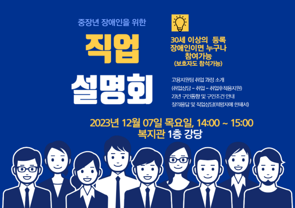 마감 중장년 장애인을 위한 직업 설명회 참여자 모집