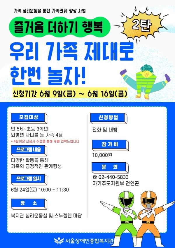 마감 가족 심리운동을 통한 가족관계 향상 사업 즐거움 더하기 행복 2탄 우리 가족 제대로 한번 놀자! 참여자 모집