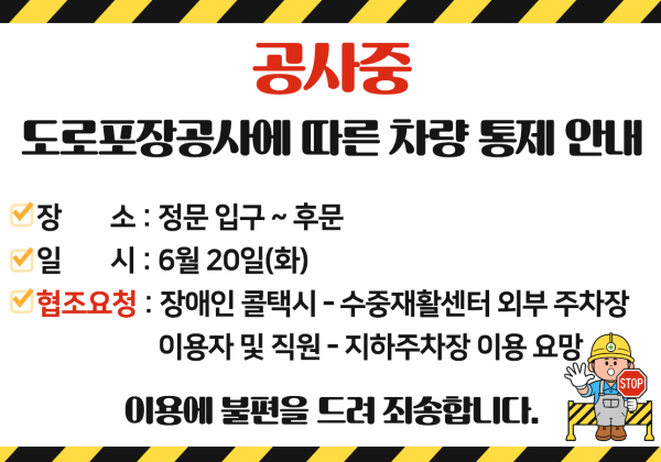 마감 도로포장공사에 따른 복지관 차량 통제 안내