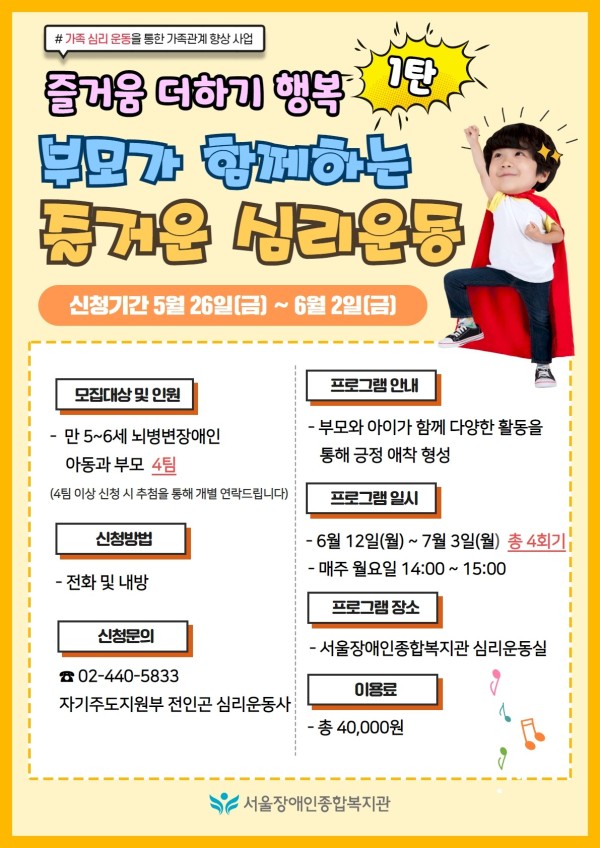 마감 [즐거움 더하기 행복 1탄] 부모가 함께하는 즐거운 심리운동 신청 안내