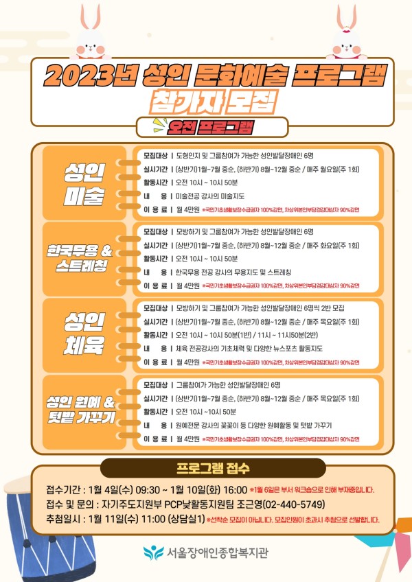 •접수 및 문의 : 자기주도지원부 PCP낮활동지원팀 조근영(02-440-5749)