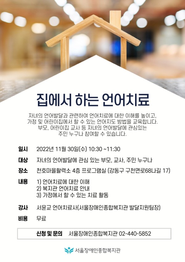 마감 [모집] 집에서 하는 언어치료 (지역사회 재활 컨설팅 부모 교육)