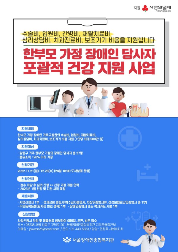 마감 한부모 가정 장애인 당사자 포괄적 건강 지원 사업 안내 (신청기간 11/21~12/28)