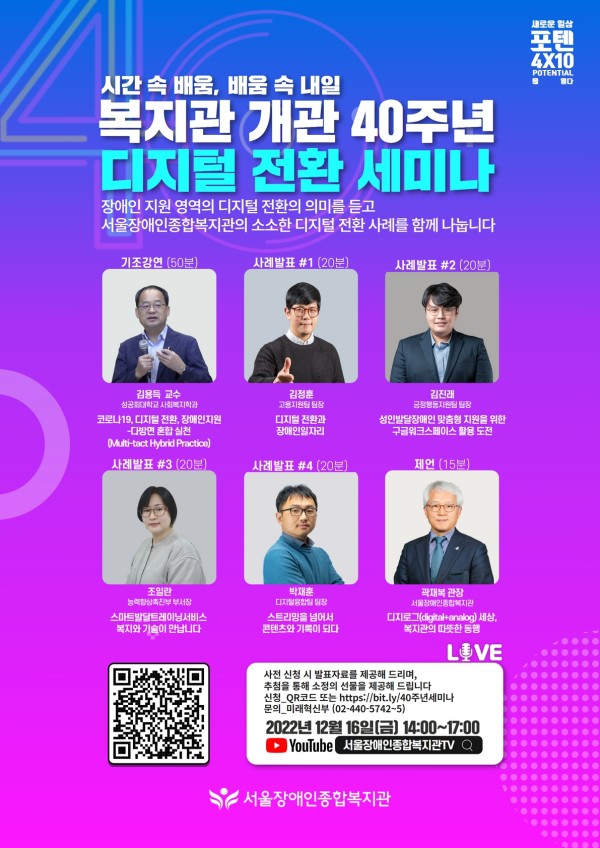 ▲ 서울장애인종합복지관 개관 40주년, 디지털 전환 세미나 포스터