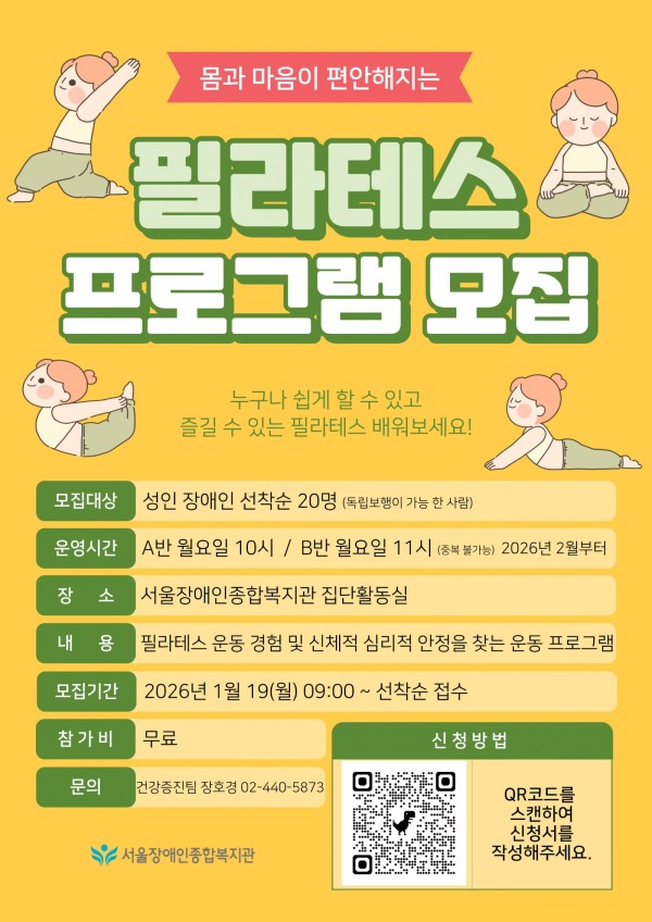 2026년 필라테스 프로그램 이용자를 모집하고 있습니다.