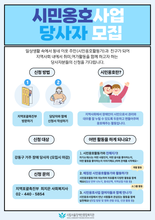 지역포괄촉진부에서 시민옹호사업에 참여할 당사자를 모집합니다.