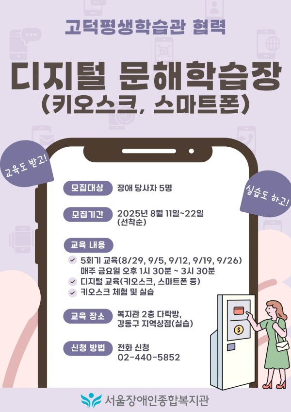 마감 디지털 문해학습장(키오스크, 스마트폰) 참여자 모집