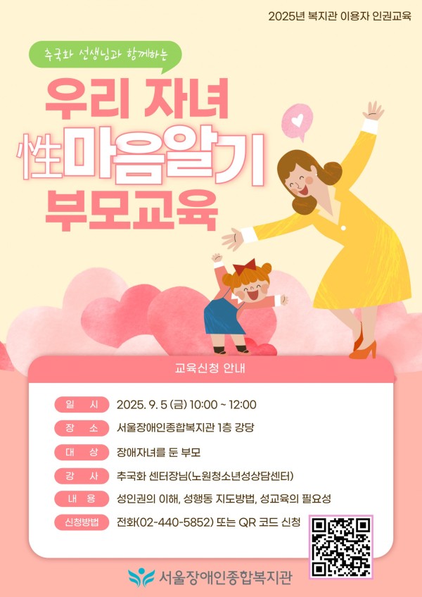 '우리 자녀 성(性) 마음알기 부모교육(이용자 인권교육)' 참여자 모집