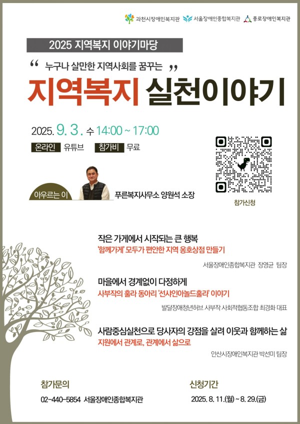 2025년 지역복지이야기마당 "누구나 살만한 지역사회를 꿈꾸는 실천이야기" 참여자를 모집합니다.