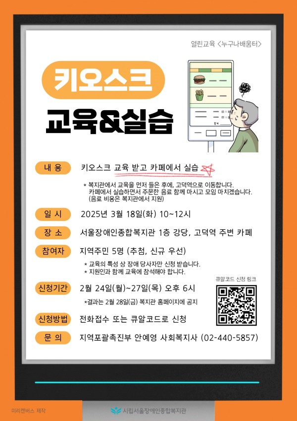 마감 열린교육 누구나배움터 <키오스크 교육&실습> 참여자 모집