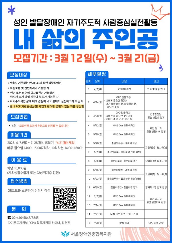 7. 문의 : 자기주도지원부 PCP낮활동지원팀 전미나, 정현진(02-440-5848/5845)
