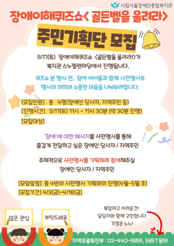 장애이해 퀴즈쇼, 골든벨을 울려라 주민기획단 모집