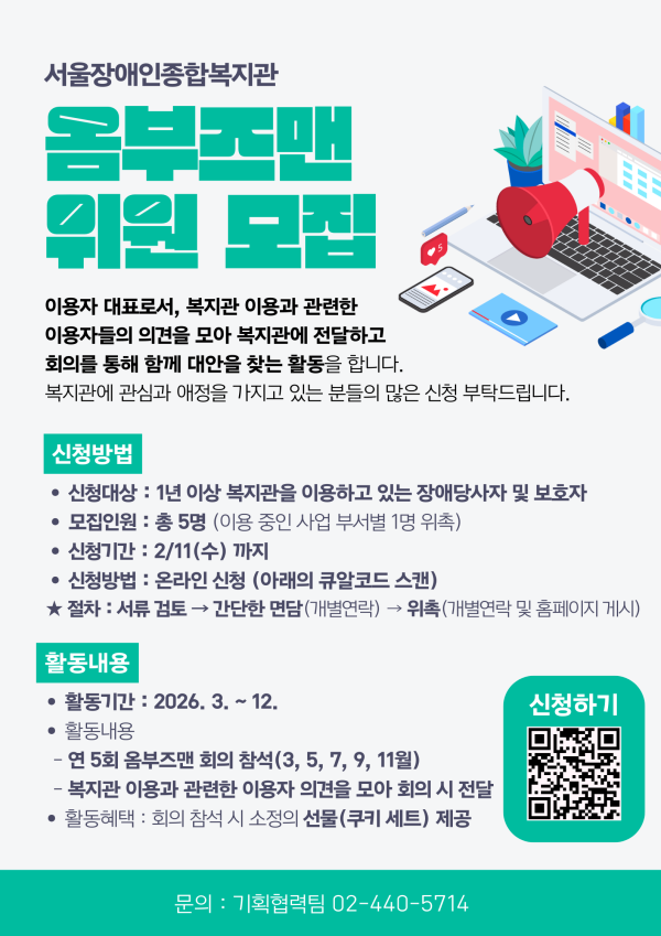 마감 2026 서울장애인종합복지관 옴부즈맨 위원 모집