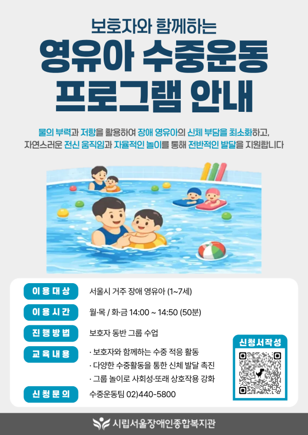 보호자와 함께하는 영유아 수중운동 프로그램 모집 안내
