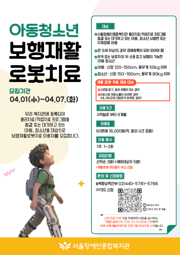 ○신청 : QR코드 신청 또는 링크 접속2026_아동, 청소년 보행재활로봇치료 모집