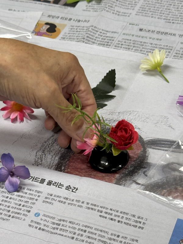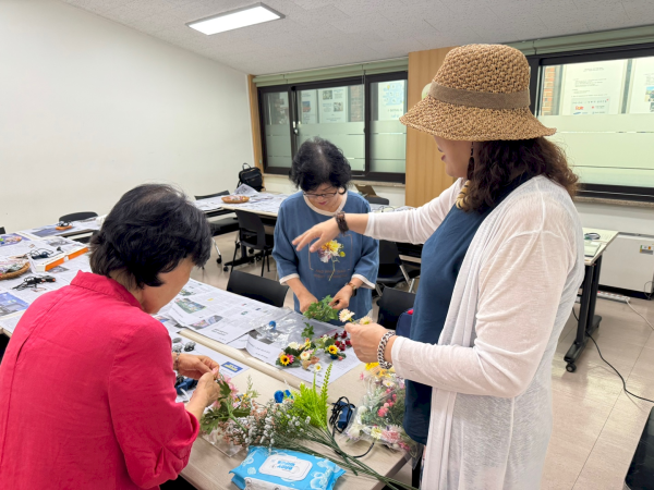 1부에는 손재주가 좋으신 오현숙님께서 조화와 마그넷을 활용해서 냉장고에 붙일 수 있는 조화공예 수업을 진행했습니다
