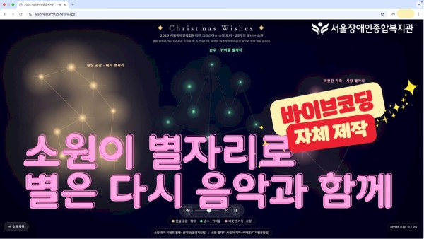 2026년 2월, 복지관은 소원 중 25개를 추려서 밤하늘의 별자리로 만들었습니다.