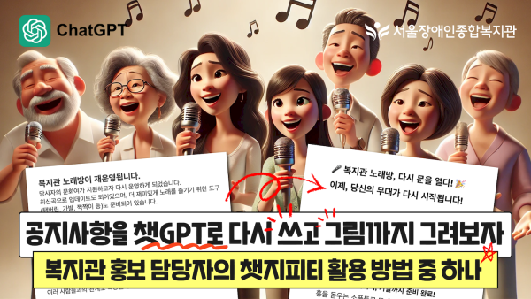 공지사항 글을 미래혁신부 디지털융합팀은 챗GPT를 써서 새롭게 다듬어 보고, 그림도 그려보았습니다.