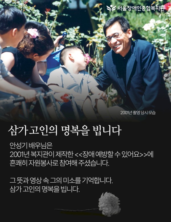 안성기 배우님의 명복을 빕니다 | 2001년 복지관이 제작한 영상, '장애 예방할 수 있어요'에 자원봉사로 참여해 주셨습니다.