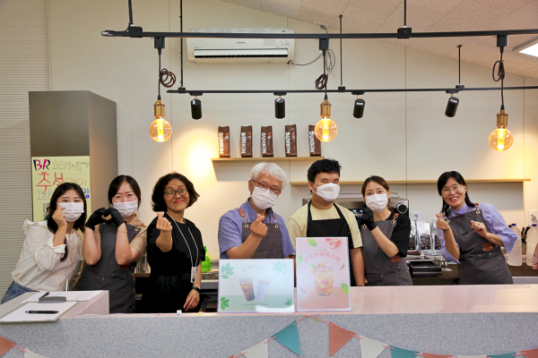 추석맞이, 오늘은 내가 점장 - 일일 명예점장과 함께하는 한가위 커피 한잔 행사에 함께한 점장 점원 기념사진