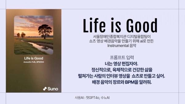 [링크 연결 : 위 프롬프트로 만든 배경음악을 들을 수 있는 서울장애인종합복지관 유튜브 채널]