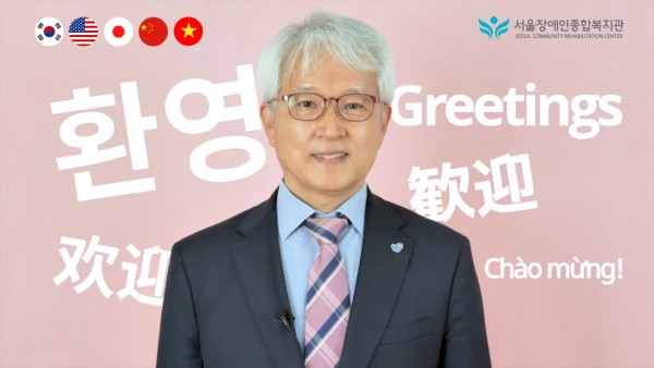 키오스크에서 상영될 복지관 관장 환영(환대) 영상-국문, 영문, 일문, 중문, 베트남어