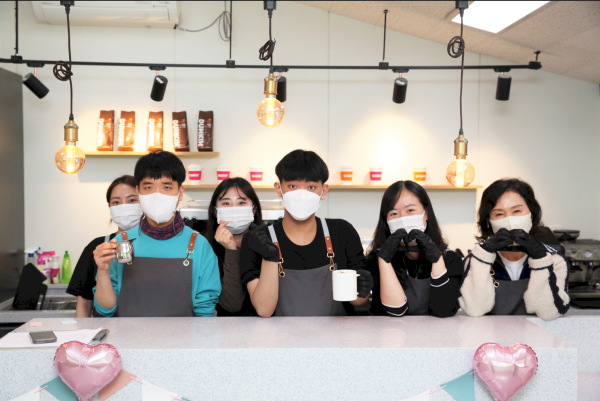행사는 복지관의 직업적응훈련실이라는 익숙한 공간에서 진행되었지만, 그날 만큼은 특별한 무대가 되었습니다. 복지관 이용자 및 직원 110명이 함께한 가운데, 참여자들은 각자의 역할에서 최선을 다하며 카페를 운영했습니다.