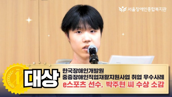 서울장애인종합복지관, 한국장애인개발원 중증장애인직업재활지원사업 취업 우수사례 대상 수상-e스포츠 국가대표, 박주현 선수