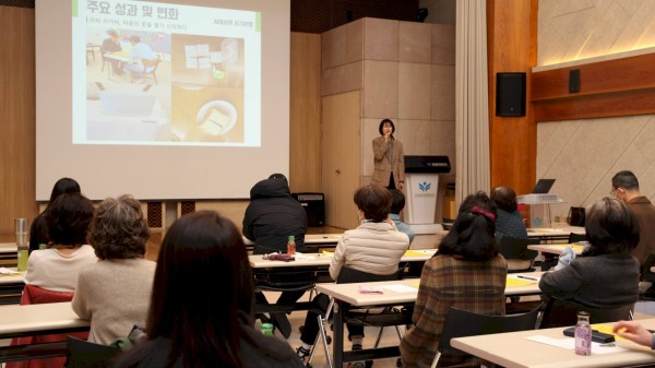 이날 교육은 서울시립대학교종합사회복지관 묵동복지팀 박현주 팀장의 '상호나눔활동 가치와 실천전략, 서울시립대학교종합사회복지 사례공유'를 주제로 열렸으며, 더불어 사는 마을을 만드는 일에 관심이 높은 지역주민들이 참석했습니다.