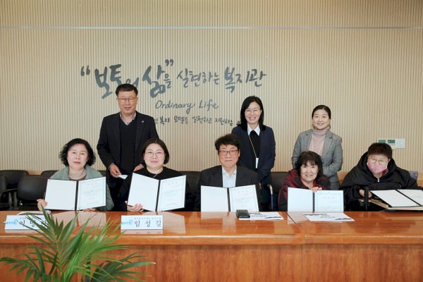 지역포괄촉진부를 대표하는 원상옥 위원, 건강증진부를 대표하는 차은숙 위원, 자기주도지원부를 대표하는 임성길 위원, 능력향상촉진부를 대표하는 이명희 위원, 직업지원부를 대표하는 이영님 위원에게 차례로 위촉장을 수여하고, 기념 촬영 후 다음 회의를 기대하며 마쳤습니다.