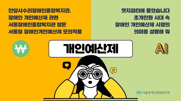 [클릭! 개인예산제 관련 영상과 챗지피티에게 물어본 '초개인화 시대 속 장애인 개인예산제 시행의 의미를 설명해 줘.' 결과도 보고 싶다면 복지관 블로그]
