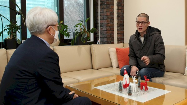 ▲ 후원취지에 대해 이야기 나누고 있는 뱀뱀회원과 곽재복 관장