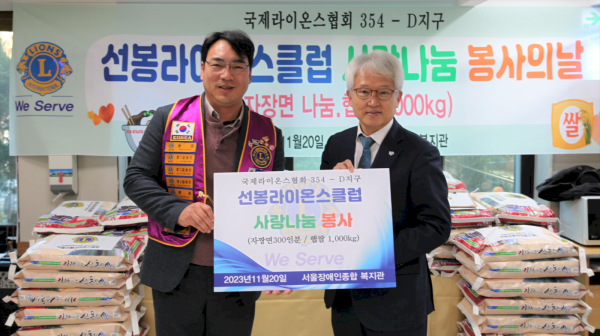 서울장애인종합복지관은 "라이온스클럽의 정신을 이웃들과 나누고 실천하는 서울선봉라이온스에 감사를 전한다."라며 "주신 귀한 쌀은 마음을 담아 꼭 필요한 이웃들과 더 큰 행복으로 나눌 것"이라고 약속했습니다.