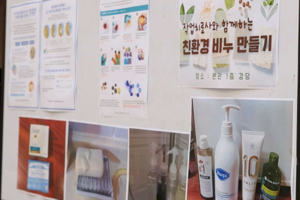 우리가 일상 속에서 자주 사용하는 샴푸와 바디워시 등의 씻는 도구는 주로 플라스틱 통 안에 담겨있습니다. 그 안의 내용물들을 다 사용하고 나면, 플라스틱 통만 남게 되고, 그 많은 통들은 쓰레기를 모아두는 곳으로 버려지게 됩니다. 이렇게 버려지게 된 플라스틱이 없어지기까지는 약 500년이라는 시간이 걸린다고 합니다. 능력향상촉진부에서는 플라스틱 사용을 줄이기 위해 친환경 비누 만들기 체험부스를 통해 환경의 중요성에 대해 알리며, 작업치료사들은 참여자들과 함께 친환경 비누 만들기 체험을 진행했습니다.