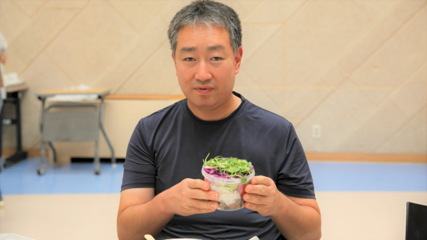 마지막 수업은 '감각을 깨우는 식사’라는 주제로 토종콩 컵샐러드를 참여자가 직접 손으로 만들어보는 실습 시간을 가졌습니다. 토종콩 샐러드를 함께 만들면서 손질된 채소와 토종콩을 보고 만져보고 먹어보는 음식의 ‘오감 경험’을 했습니다.