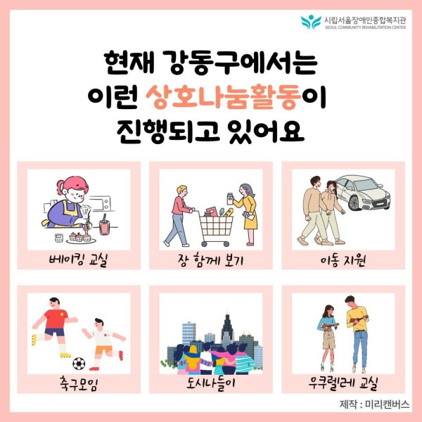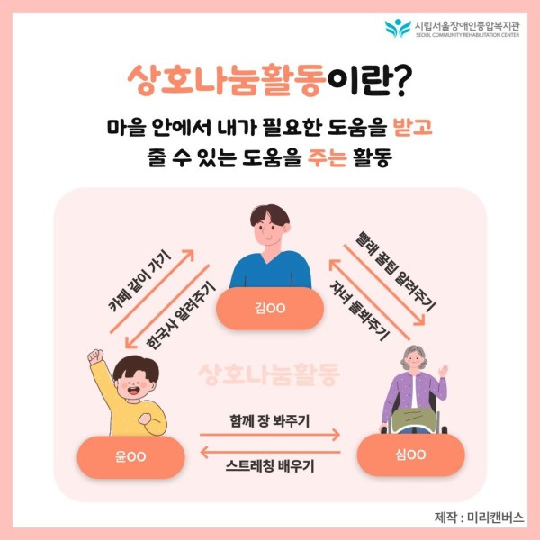 안녕하세요? 오늘은 서울장애인종합복지관에서 진행하고 있는 상호나눔활동을 소개하고자 합니다.