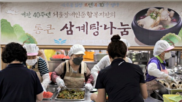 이번 '개관 40주년 서울장애인복지관의 통큰 삼계탕나눔행사'에는 이용인과 직원 250여 분이 찾아주었습니다. 이날 행사에서는 따뜻한 삼계탕뿐만 아니라 따뜻한 마음도 함께했습니다. 삼계탕을 드시기 힘든 분들에게는 윤성미 영양사와 복지관 직원들이 살을 발라주며 드시기 쉽도록 거들었습니다.