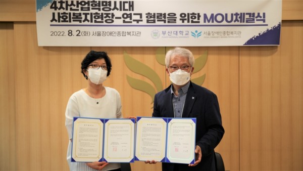 4차 산업혁명시대 사회복지현장-연구 협력을 위해 서울장애인종합복지관과 부산대학교 BK21 FOUR 4차 산업혁명시대 지역사회의 성장과 공존을 선도하는 사회복지 미래인재양성사업단(이하 부산대학교 사회복지학과 BK21사업단)이 뜻을 모았습니다.