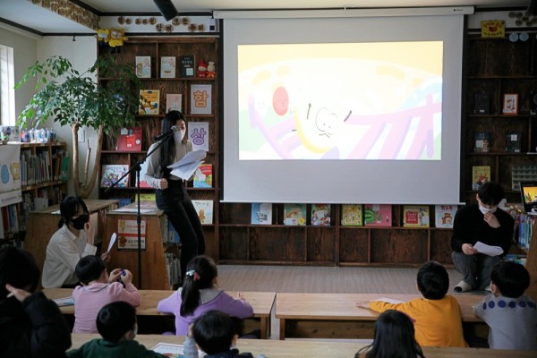 바로 각각의 등장인물을 맡아 학생들이 연기하는 목소리로 그림책을 재미있게 읽어주는 것이었습니다. 덕분에 어린이들이 이야기에 집중하고, 그림과 목소리를 따라 내용을 쉽게 이해할 수 있었습니다.
