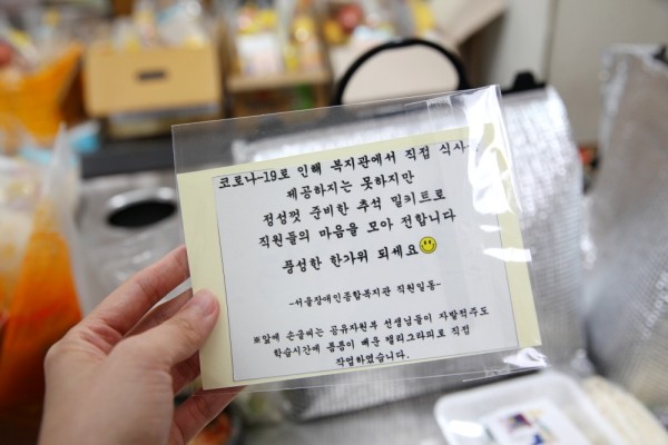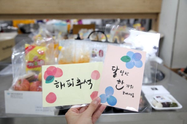 “코로나19로 인해 복지관에서 직접 식사를 제공하지는 못하지만, 정성껏 준비한 추석 밀키트로 직원들의 마음을 모아 전합니다. 풍성한 한가위 되세요.”