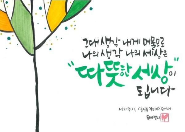 * 글 : 나태주님 시 <들길을 걸으며>中 * 캘리그라피 : 김여종 작가(폰테캘리)